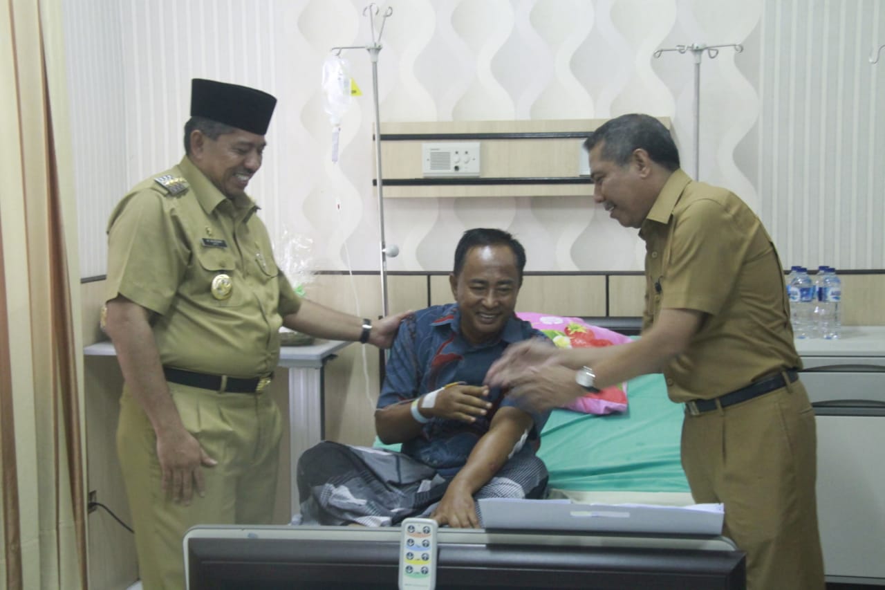 Bupati Siak Alfedri bersama Sekdakab Siak HTS Hamzah menjenguk AKP Jailani di RSUD Tengku Rafian Siak.