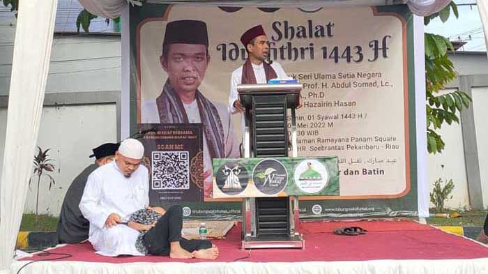 Ustadz Abdul Somad (UAS) menjadi khatib pada acara solat Idul Fitri di Lapangan Ramayana Panam Square Pekanbaru Senin (2/5/2022) pagi