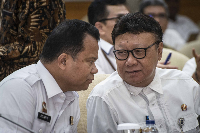 Nama Mendagri Thahjo Kumolo disebut Bupati Bekasi nonaktif, Neneng Hassanah Yasin, dalam kasus dugaan suap proyek Meikarta.