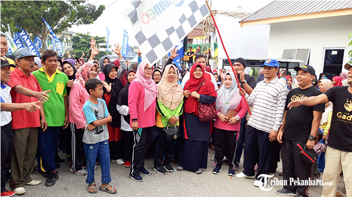 Event olahraga bulanan bertajuk Pegadaian Keliling Kampung yang diikuti oleh ribuan masyarakat di Kelurahan Rintis, Kecamatan Limapuluh, Pekanbaru