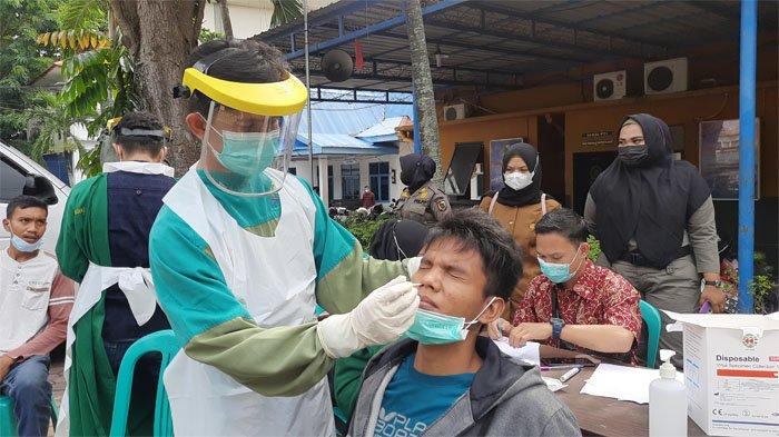 70 orang menjalani swab test di Kantor Satpol PP Kota Pekanbaru, Senin (5/7) usai terjaring razia protokol kesehatan di Koro-Koro, Jalan HR Soebrantas
