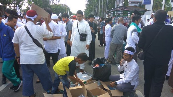 Tim Pemburu Kumpulkan Sampah Usai Pelaksanaan Aksi Damai Bela Islam Jilid III di Pekanbaru