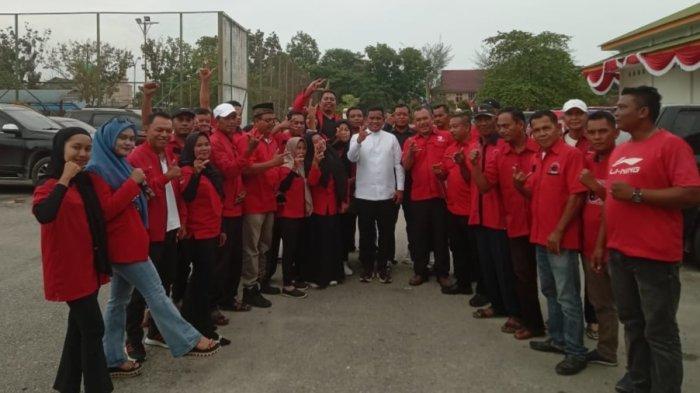 Ratusan kader dan pengurus PAC PDI P dari Kuansing yang lakukan aksi di kantor DPD PDI P Riau disambut pengurus di tingkat Provinsi langsung Rabu.