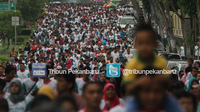 Barikut foto-foto yang mengabadikan kemeriahan acara jalan sehat Tribun Pekanbaru bersama Luwak White Koffie: